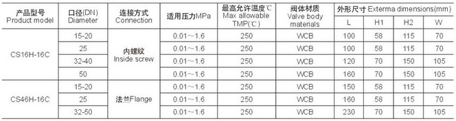 膜盒式蒸汽疏水閥技術參數表: